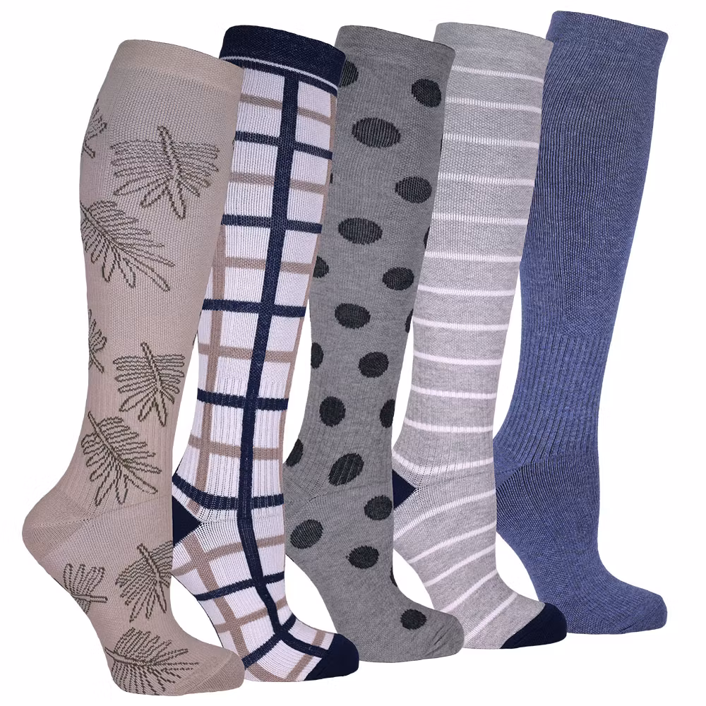 5-pack stödstrumpor med graderad kompression för extra energi åt benen.